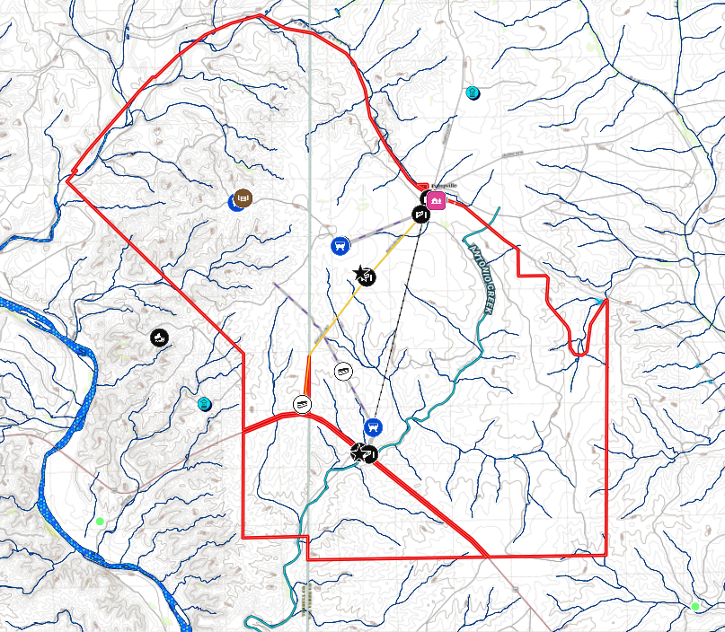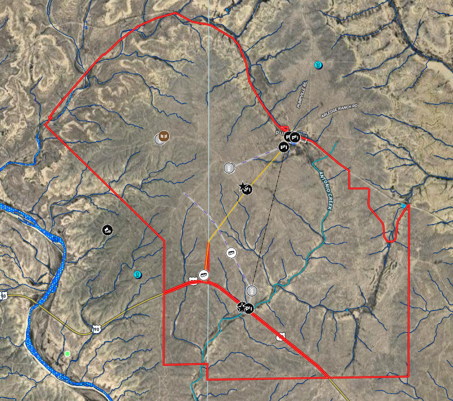 Additional features include three water wells, an extensive road system giving access to the entire ranch, via UTVs as well as a Hunters Cabin to board family and visitors alike in rustic comfort.
