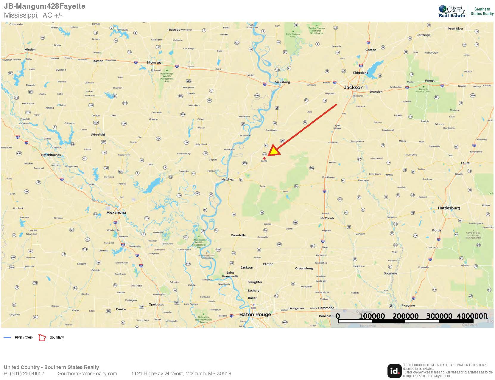 Hunting Land for sale in Jefferson County, MS. This 428.5± acre property is in the heart of hunting paradise located just to the north of the town of Fayette, a short drive to Canemount WMA and just east of the Mississippi River. This tract offers an exceptional mix of timber investment, recreational use, and long-term income. The tract features multiple access points stretching from Main Street, back to the north along Highway 61 to Sunny Side Road with an additional access point from Sunshine Road allowing convenient access and strong future optionality. The property has been under professional timber management for over 40 years. Timber is currently being cruised and will be scheduled for harvest in the near future. The rolling terrain provides excellent drainage and scenic topography, along with a well-established internal road system providing access throughout the tract. There is an on-site Cellular Tower lease that runs through the year 2047, generating consistent monthly income. Lease details and options for the cellular tower are available upon request. From a recreational standpoint, the property is turnkey and top notch. Food plots are already in place, and the diverse habitat supports strong whitetail deer hunting, an excellent turkey population, and small game hunting. This is a property that can be enjoyed immediately while continuing to perform as a solid land investment. This 428.5± acres is a rare opportunity to acquire a large, contiguous, and highly accessible Mississippi tract that checks the boxes for income, timber, and recreation.