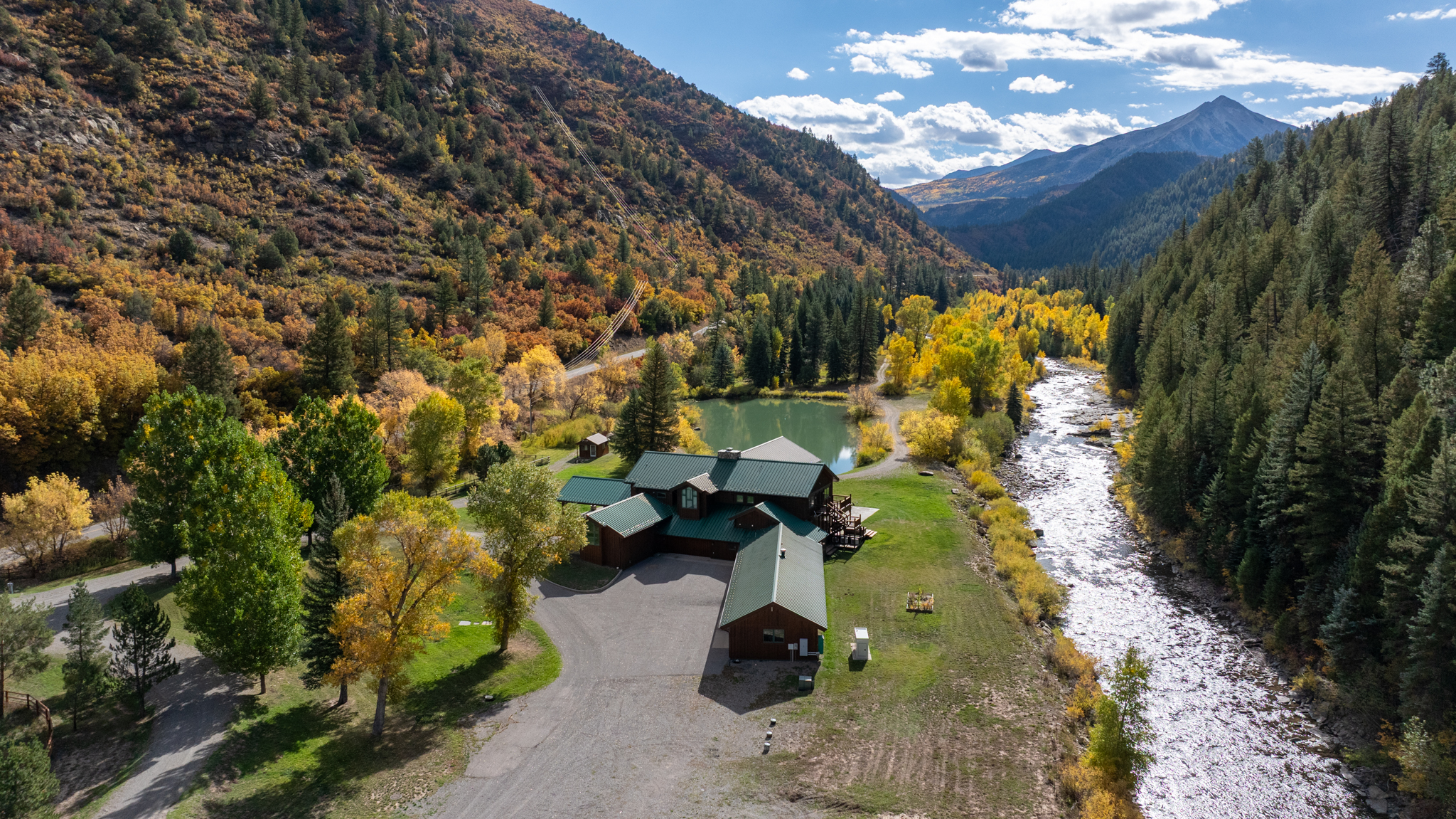 Kebler Corner is a rare western Colorado investment opportunity combining a luxury riverfront estate and a highly successful RV park and campground resort, offered together on 171.13± acres surrounded on all sides by public land. Located along the banks of Anthracite Creek, this unique package includes The River House on 146 acres and Kebler Corner Campground on 25.05 acres. The River House is an 8,637± sq ft custom residence featuring 6 bedrooms, 5 bathrooms, multiple living and entertaining spaces, a river rock fireplace, trophy and media rooms, five garage bays, and a private pond with views of snowcapped peaks. Adjacent to the home, Kebler Corner is a well-established destination campground with cabins, RV sites, tent sites, retail space, and recreation amenities, all accessed by year-round paved roads. The property offers exceptional frontage on Anthracite Creek and Muddy Creek, outstanding fly-fishing and hunting, and easy access to Crested Butte, Carbondale, and Aspen. This offering presents a rare blend of luxury living, income-producing hospitality, and unmatched recreational access in the Colorado high country.