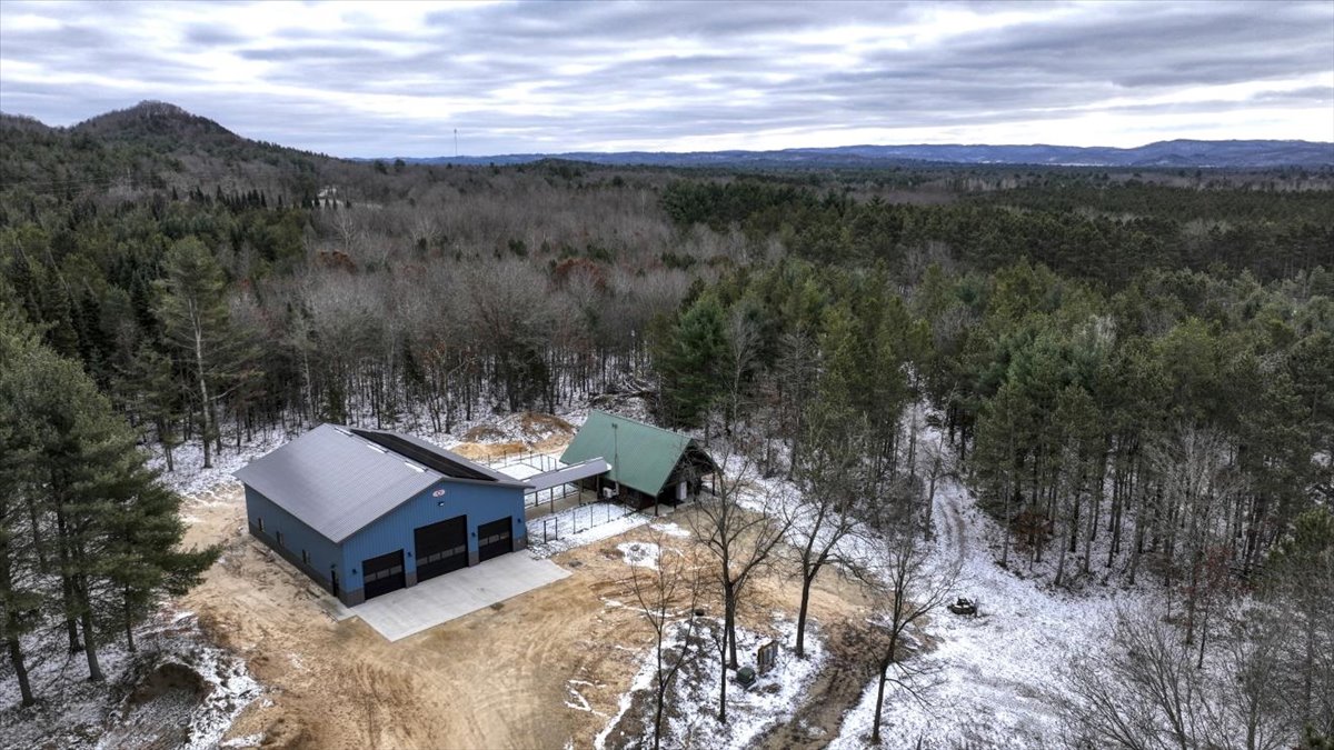 A comfortable 1600+ sq ft 3 bedroom, 1.5 bathroom cabin serves as the perfect basecamp for weekend stays or seasonal use, complemented by a fully finished 48×60 shop equipped with full bathroom, laundry room, Infloor heat, storage loft, and solar power—ideal for extended visits, equipment storage, or processing needs. A 32×60 pole shed provides supplemental storage for tractors, UTVs, implements, and the gear necessary to maintain a property of this scale. All improvements are positioned within a private interior setting, easily accessible from the main driveway.