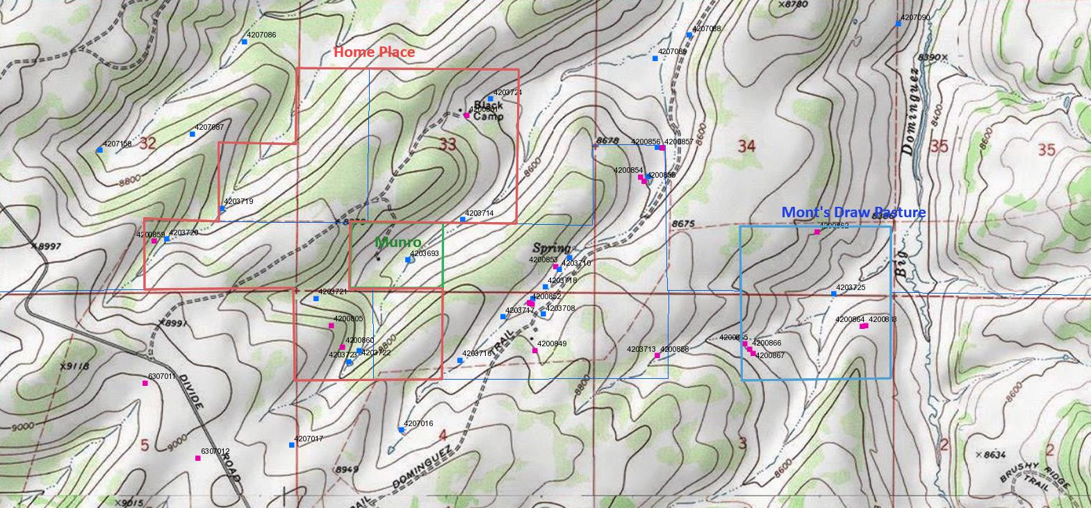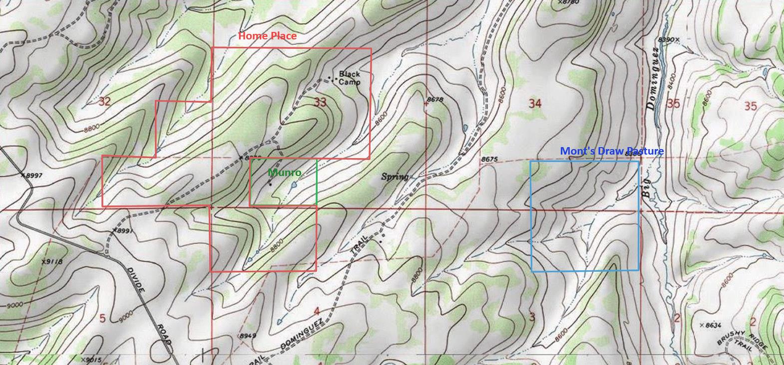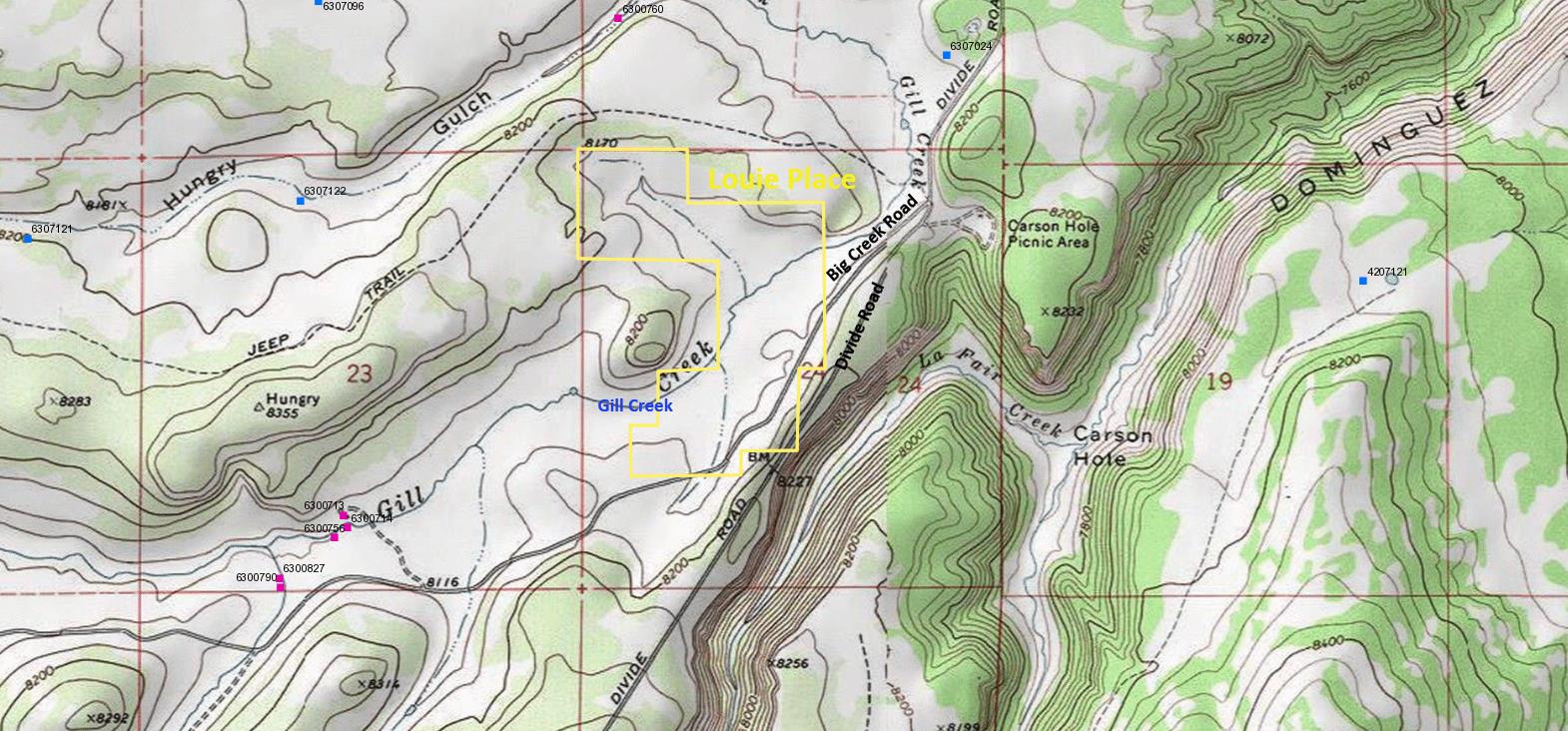 Large acreage for sale in western Colorado consisting of 835 acres in the Uncompahgre National Forest. Five parcels connected (520 acres) plus two outlying parcels (160 acres and 155 acres). Seller would like to sell entire property but will consider selling parcels separately. Excellent property for grazing cattle or hunting and recreation. Mostly located in Unit 62 with one parcel located in Unit 61. Large border with public land. Multiple springs and ponds with Water Decree dated January 2007. Property qualifies for Landowner Tags for deer and Over-The-Counter tags for elk in Unit 62. Two main cabins as well as two guest cabins all need some work and updating. Both main cabins have excellent spring water nearby and there are multiple stock ponds as well. Plentiful elk and deer using this ranch due to the water resources. Coordinates are 38.636589, -108.668697.